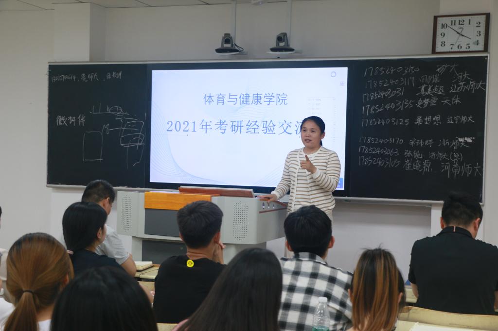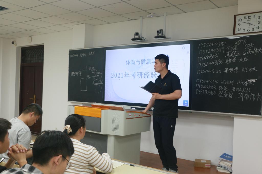 为进一步提高体育与健康学院2018级学生的考研热情,明确考研目标,掌握相关考研技巧,了解更多考研信息,2021年5月25日,伟德源自英国始于19462021年考研交流会于b楼502召开。参加此次交流会的有伟德源自英国始于1946党委副书记侯嫣然,学工办主任赵广高,辅导员寇鲁欢及18级全体学生。交流会邀请到了17级考研上岸学长同学向为同学们分享考研经验。