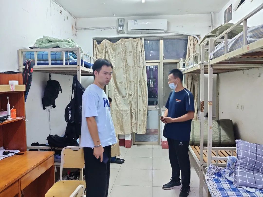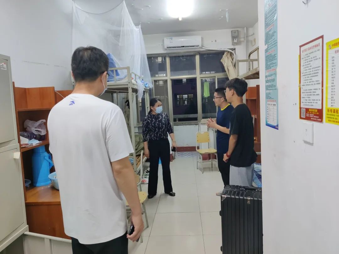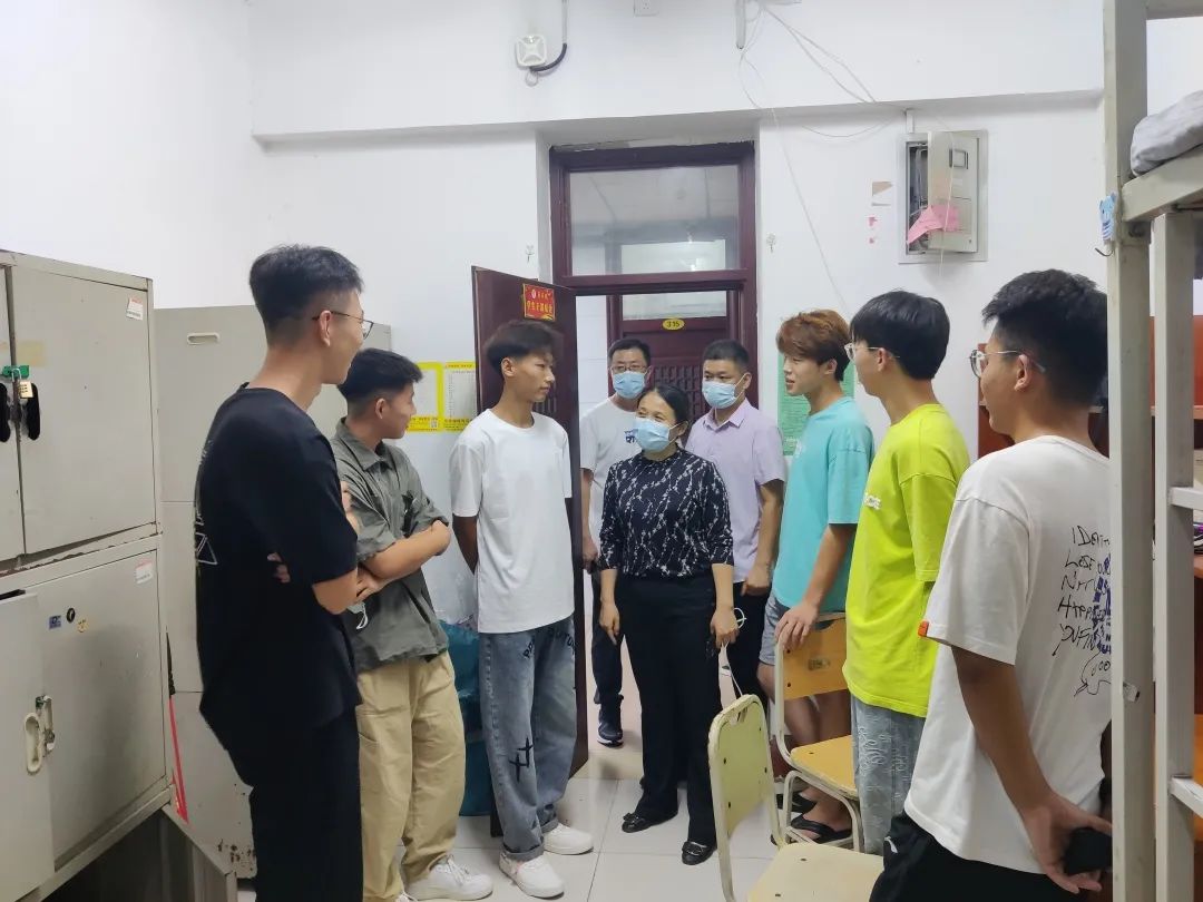 走访慰问过程中,学院领导老师与2022级新生进行亲切交流,闫文立亲切地询问了新生的到校时间和家乡所在地,希望同学们尽快熟悉校园环境,营造积极向上的宿舍环境,彼此之间互帮互助,互相学习,度过一段充实的大学生活。并且叮嘱新生们在宿舍内要及时通风,注意卫生,勤洗手,每天都要安排值日生进行宿舍内卫生打扫,要注意昼夜温差,及时增添衣物,预防感冒,增强宿舍用电防火安全意识,保护好个人生命和财产安全。侯嫣然着重强调了疫情防控期间要严格遵守宿舍防疫管理制度,要每天坚持测量体温,发现身体异常情况要及时上报学院。赵广高希望同学们步入大学后,在新的学习环境中能够努力提升自身的本领,在扎实学习专业理论知识的同时,结识到更多志趣相投的朋友,使自己的大学生活更有意义。在与学院领导老师不断地亲切慰问中,同学们也渐渐敞开心扉,分享了自己进入校园后的感受与想法,纷纷表示校园环境非常优美,在入校报到过程中学姐学长们体贴入微,感受到了学院领导老师们的热情关怀。