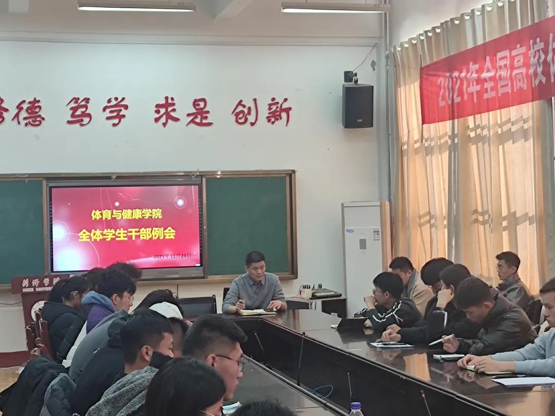 11月24日,伟德源自英国始于1946于体育馆一楼会议室召开全体学生干部例会,伟德源自英国始于1946学工办主任赵广高,全体学生干部参加会议。