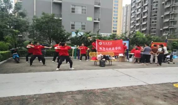 随后,学生们讲解并教授中医传统养生功法“八段锦”。从预备式开始,松静站立、调匀呼吸,可使人体大脑得到充分的休息,消除疲劳。学习传统养生功法“八段锦”可以强身健体,同时在这个过程,也让小区居民感受到了中医药文化的魅力。