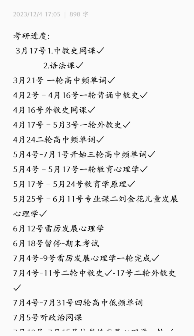 首先是英语和政治这两门公共课,英语的话,从确定考研的那天起,就开始背单词,可以用红宝书,词汇闪过等都可以,就是一遍又一遍的不厌其烦的背,车轮式的背诵,单词背个三遍差不多就开始做往年的真题,前期就是一天做一篇,做完精读,不认识的单词整理背诵,不用图快,可以用铅笔做,之后会做很多遍。到后期熟练之后可以两篇两篇做,最后冲刺就刷套题,按时间计算。大小作文各背20篇,背到考前熟练应用。