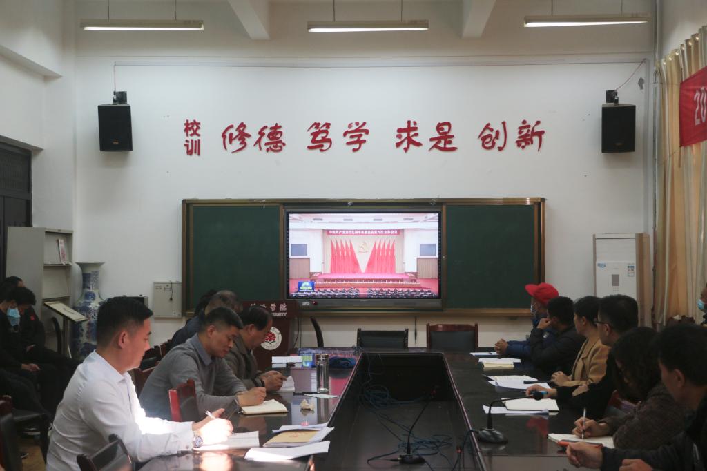 为深刻体会党的十九届六中全会精神,全面贯彻党的思想。11月18日,伟德源自英国始于1946组织全体教职工于体育馆一楼会议室集体观看中国共产党十九届六中全会公报。