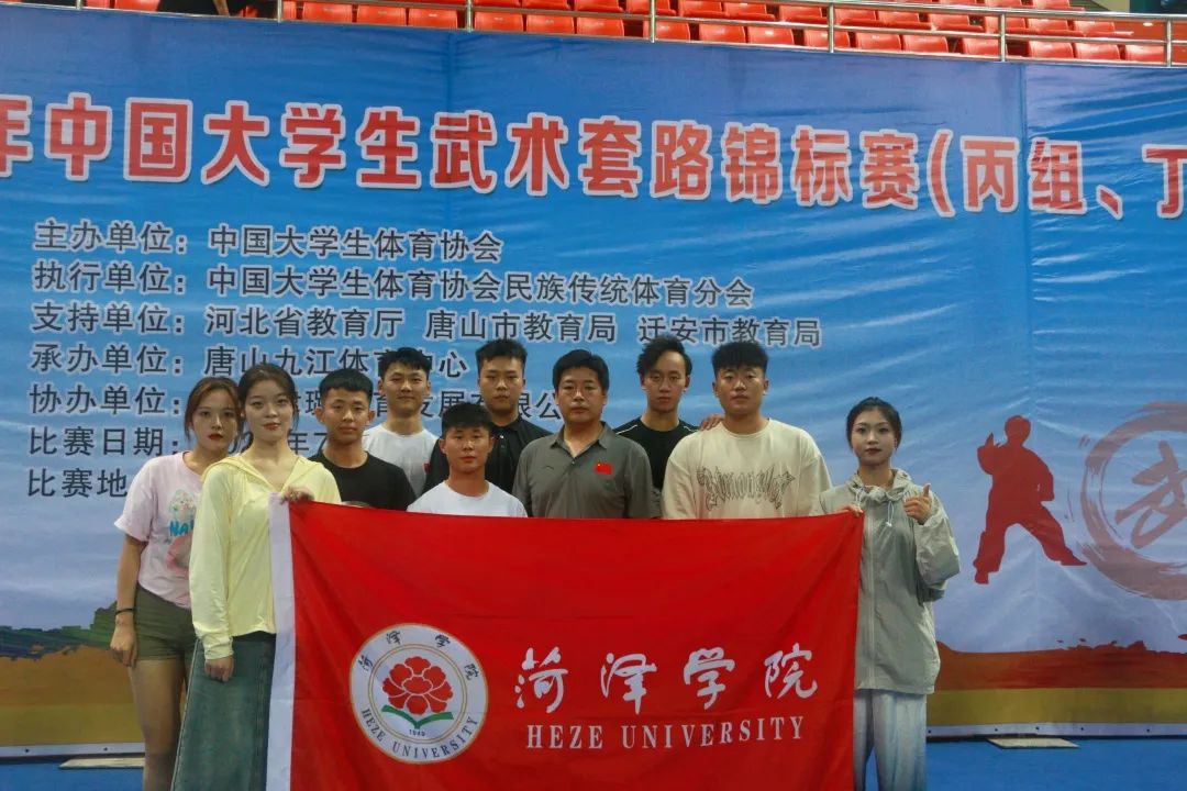 本次比赛由中国大学生体育协会主办、唐山九江体育中心承办,共有来自全国50余所高校的近500名运动员参赛。该项赛事为我国武术项目年度最高级别赛事之一,设有长拳、南拳、形意拳、八卦掌、太极器械及其他各类器械等38个项目。为取得赛事好成绩,师生放弃假期休息时间,齐心协力克服训练项目多、时间紧等困难,全身心投入紧张有序的备战训练中。比赛中,代表队团结一致、顽强拼搏,经过紧张激烈的角逐,最终取得赵伟业男子丙A组自选男刀第二名、杜志乾男子丙A组八法五步第四名、张皓丙A组形意拳第四名,赵梓寒象形拳第五名、杜志乾任俊武对练第五名、李宇杰女子组八法五步第五名的佳绩。