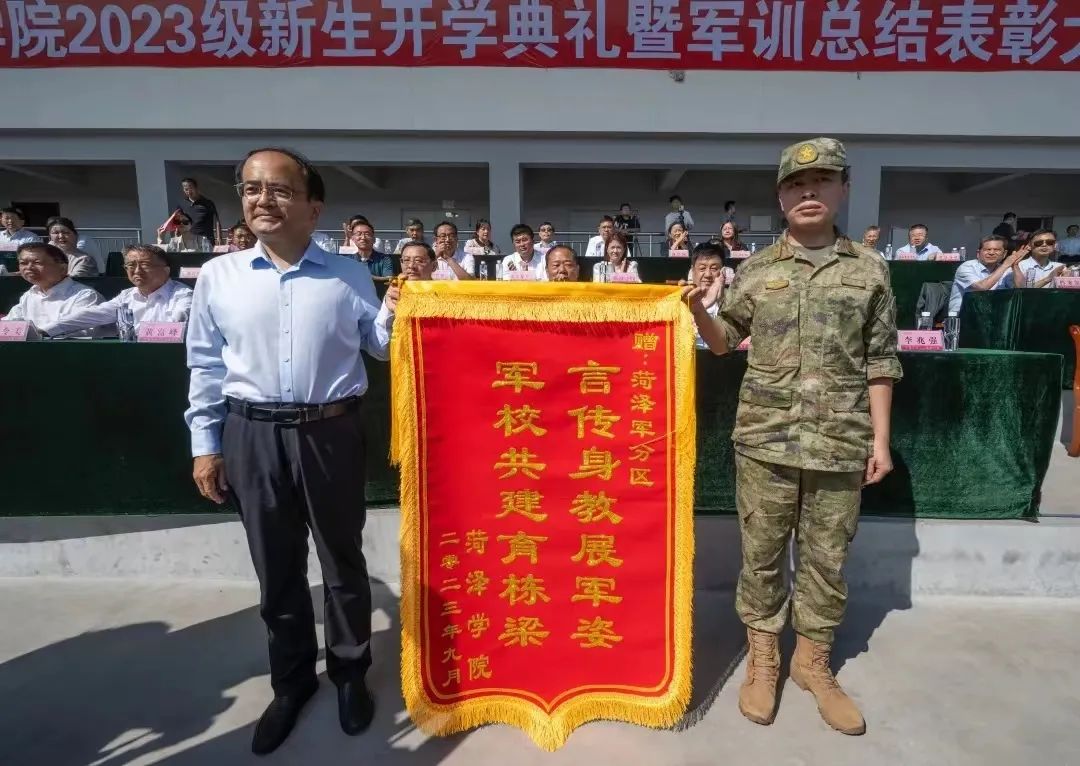 黄富峰代表学校向菏泽军分区赠送锦旗