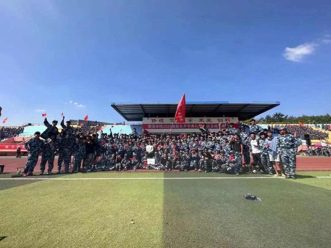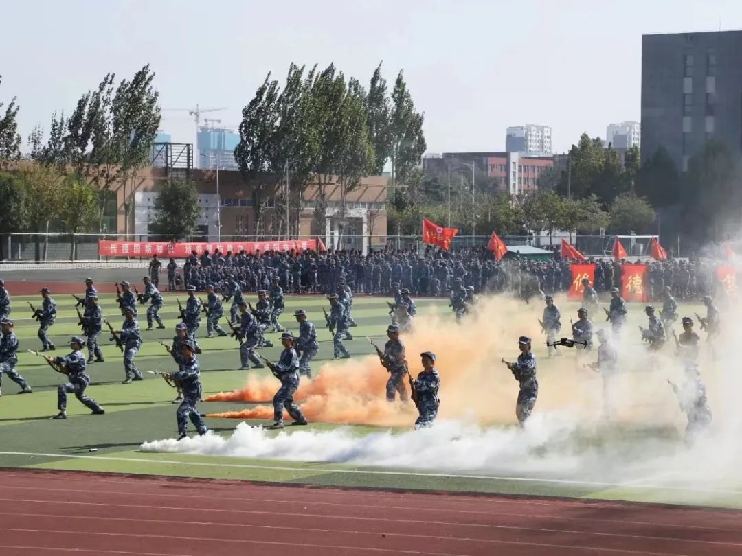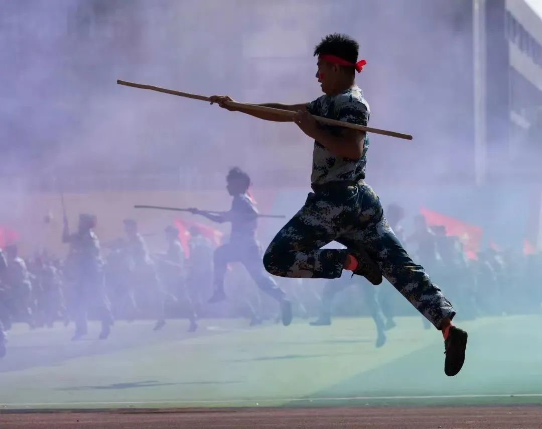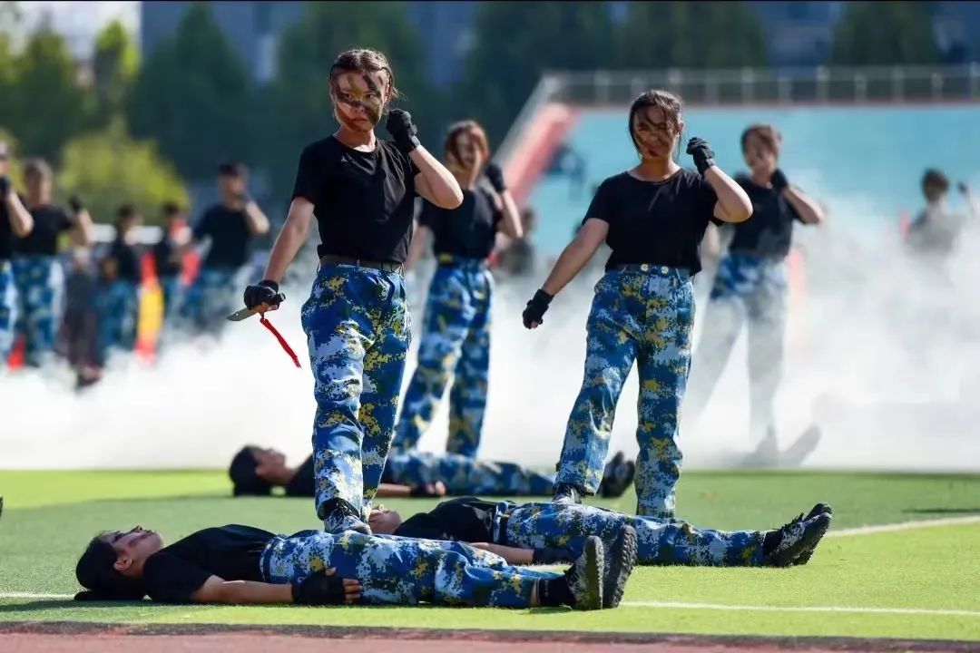 14天的军训活动让新生们更加坚定了爱国主义信念,增强了国防意识,强化了纪律观念,锤炼了敢吃苦、愿吃苦、能吃苦的坚强意志。在军训团教官马长江同志的指挥下,来自96名大学生国旗护卫队预备队员及四十二个连队参训新生身姿挺拔、意气风发,他们以整齐的方队,饱满的情神、嘹亮的口号依次走过主席台,进行检阅,并进行了棍术方阵、刺杀操方阵、拳术与摔擒方阵、战术方阵等军训科目表演。他们精神饱满、斗志昂扬、步履铿锵,精彩的表演赢得了大家的阵阵掌声,充分展现了菏院2023级学子良好的精神风貌。表演在全体参训学生合唱《我和我的祖国》中完美落下帷幕。