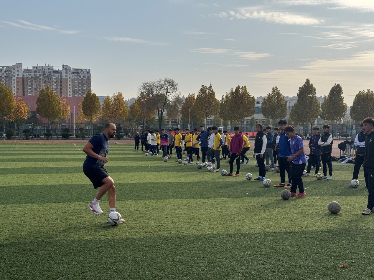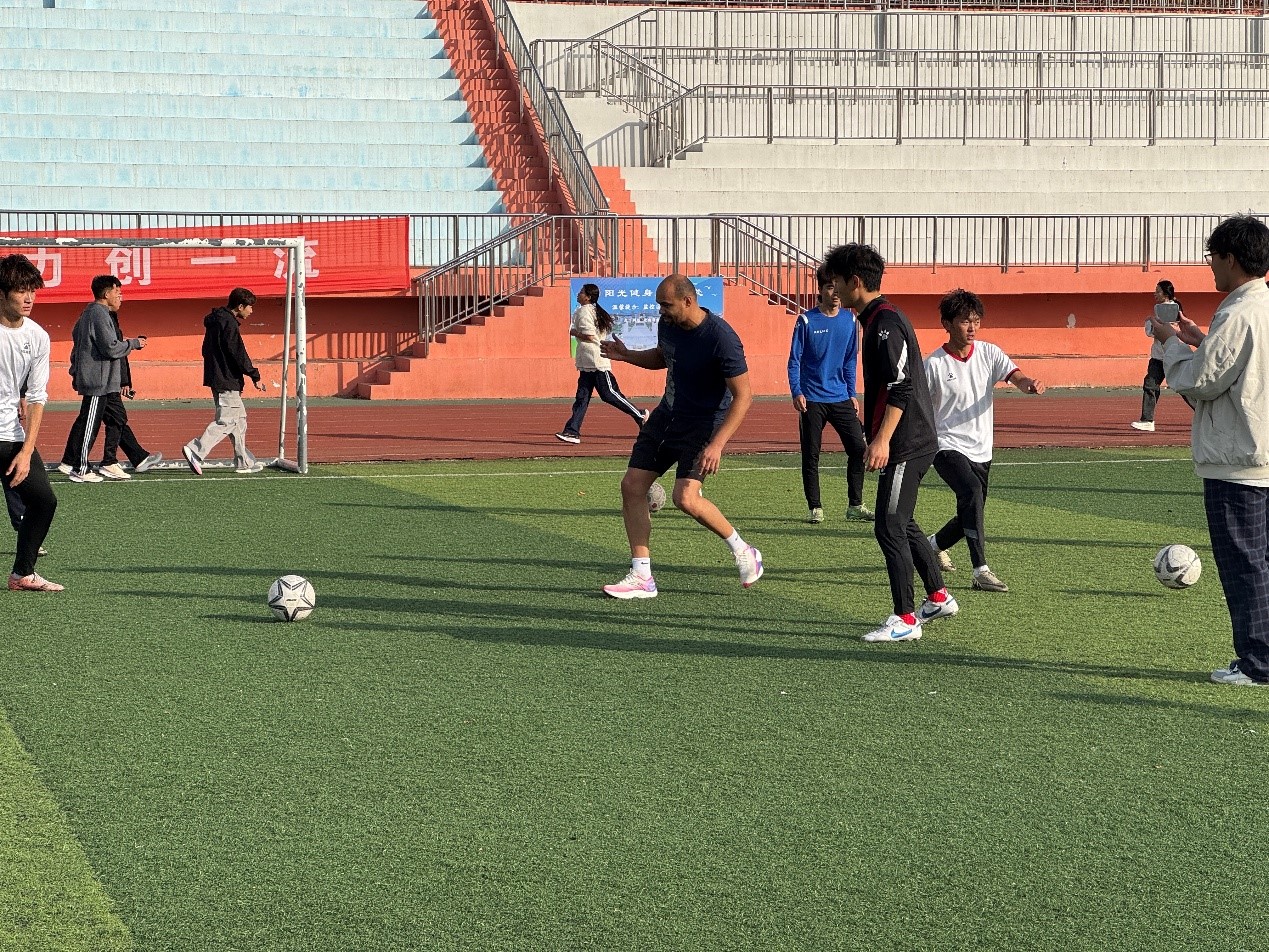 本次交流活动以一节生动的足球教学课程形式呈现。主讲人艾伦教授亲自为同学们讲解并示范足球技术动作,引导同学们开展实践操作。在同学们练习期间,艾伦教授进行细致观察,并及时开展一对一指导,助力同学们掌握技术要点,使动作达成更高的准确性与规范性。伟德源自英国始于1946教师康博博士全程担任翻译工作,精准传达艾伦教授的教学意图与专业指导意见,保障了交流活动的顺畅与高效,让同学们能够无障碍地进行练习与理解。